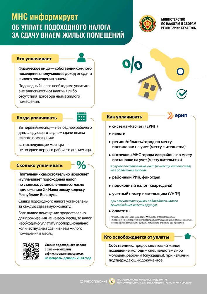 В Министерстве по налогам и сборам напоминают о необходимости уплаты подоходного налога физическим лицам, получающим доход от сдачи собственного жилого помещения внаем.