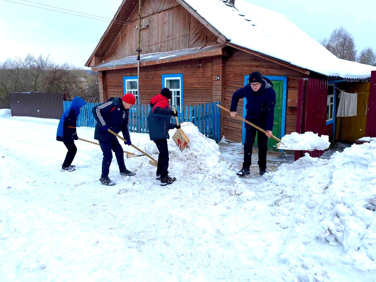 В борьбе со снежной стихией землякам помогают школьники Климовщины. Волонтеры Милославичской средней школы постоянно принимают участие в таких трудовых акциях. Они расчищают снег не только на придомовых территориях сельчан, но и возле Свято-Вознесенской церкви.