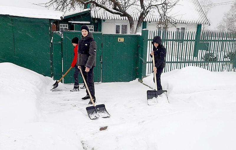 Помощь в уборке снега — общественно-важное дело, так считают учащиеся Тимоновской средней школы Климовичского района. Вооружившись лопатами, волонтеры отправились к ветерану педагогического труда Татьяне Захаренко. Семиклассники дружно взялись за работу и быстро расчистили территорию у дома.