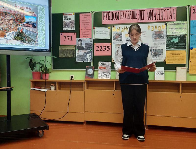 Информационный час «Рубцом на сердце лег Афганистан» 15 февраля прошел в Лобжанской средней школе. Учащиеся узнали об афганской войне, как она начиналась, сколько длилась, сколько погибло молодых парней. Заочно познакомились с земляками, которые выполняли свой интернациональный долг.