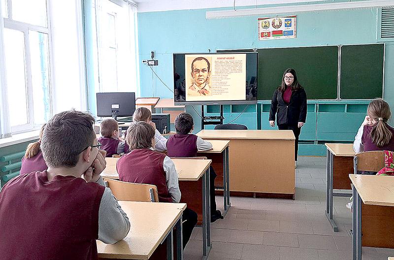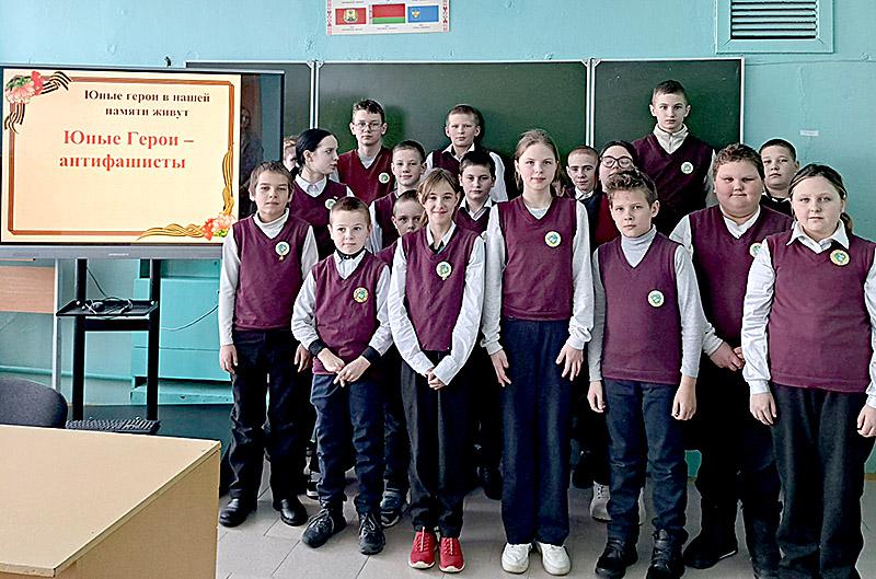 Час памяти «Юные герои в нашей памяти живут» прошел в Милославичской средней школе Климовичского района. Педагог-организатор Елизавета Тихановская рассказала учащимся о том, кто такие юные герои-антифашисты, и почему они наравне со взрослыми боролись с врагом.