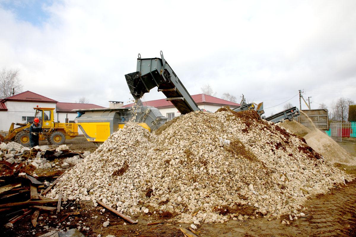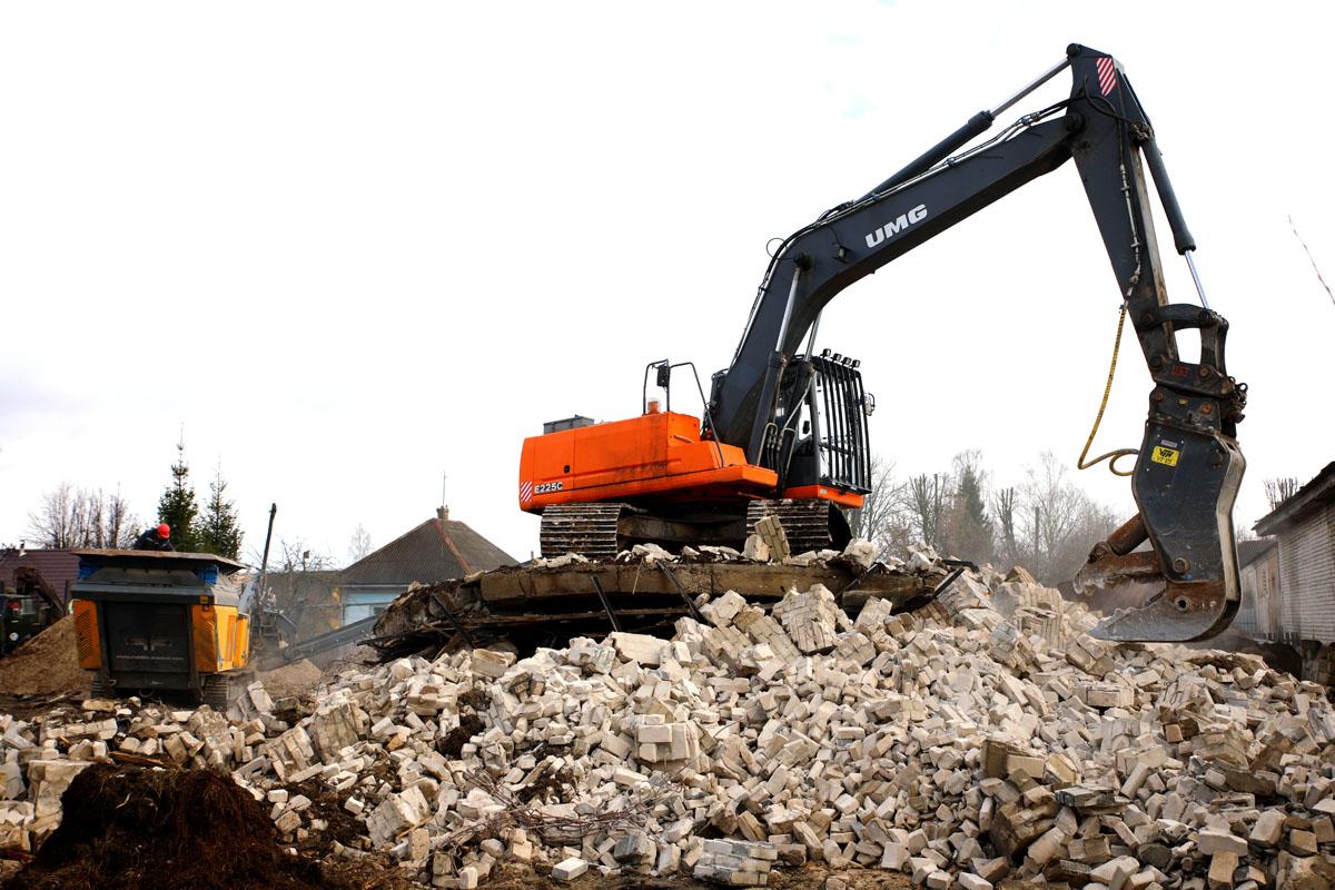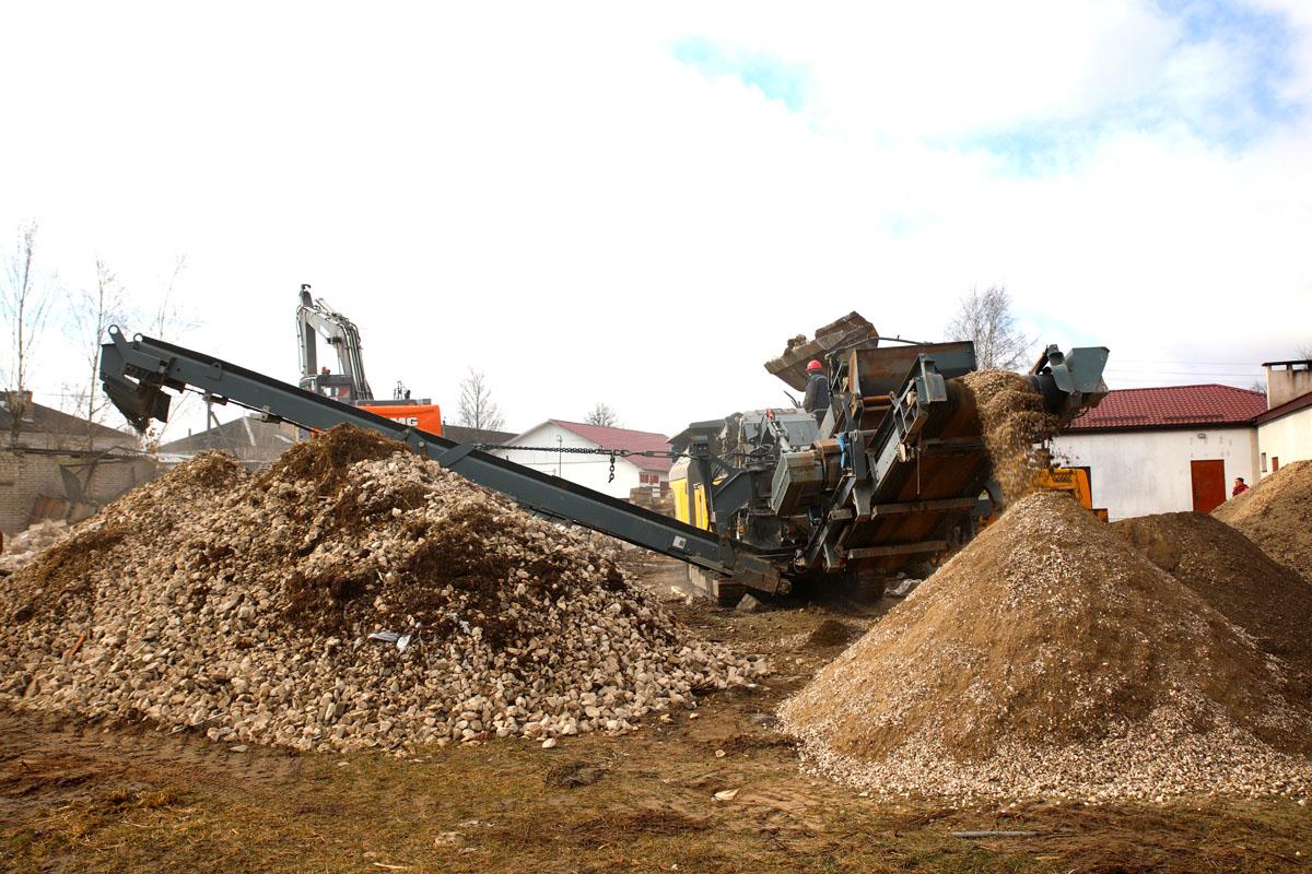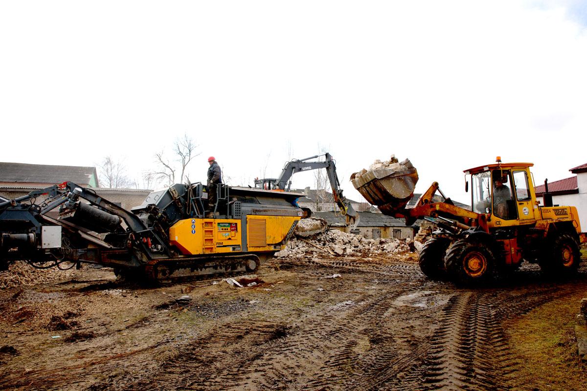 После взрыва остались отходы из кирпича и железобетонных конструкций. Для их переработки подключили специальную технику.