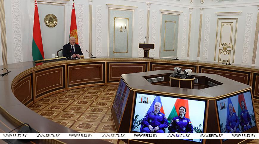 Александр Лукашенко начал встречу с вопроса командиру экипажа: «Олег, к тебе вопрос как к командиру. Как самочувствие ваше и нашей главной героини?»