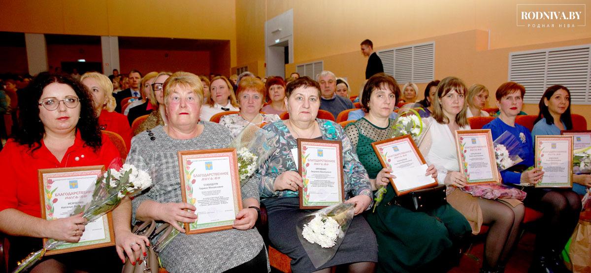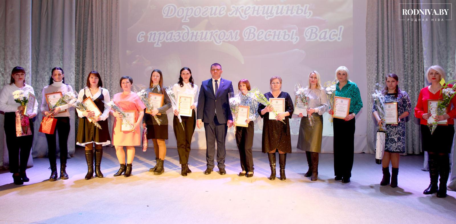 Председатель райисполкома вручил Благодарственные письма и ценные подарки представительницам предприятий, организаций, учреждений Климовщины. На сцену РЦК за наградами поднимались Ирина Гончарова — художественный руководитель ГУК «Централизованная клубная система Климовичского района», Лариса Слабодчук — бригадир производственной бригады комплекса «Березки» КСУП «Михалинский», Наталья Исаченко — учитель начальных классов Роднянской средней школы, Оксана Морозовская — маляр-штукатур ГУКДСП «Климовичская ПМК № 256», Ольга Асмоловская — уборщик помещений Автопарка № 9. Всего Дмитрий Викторович наградил более 20 тружениц.