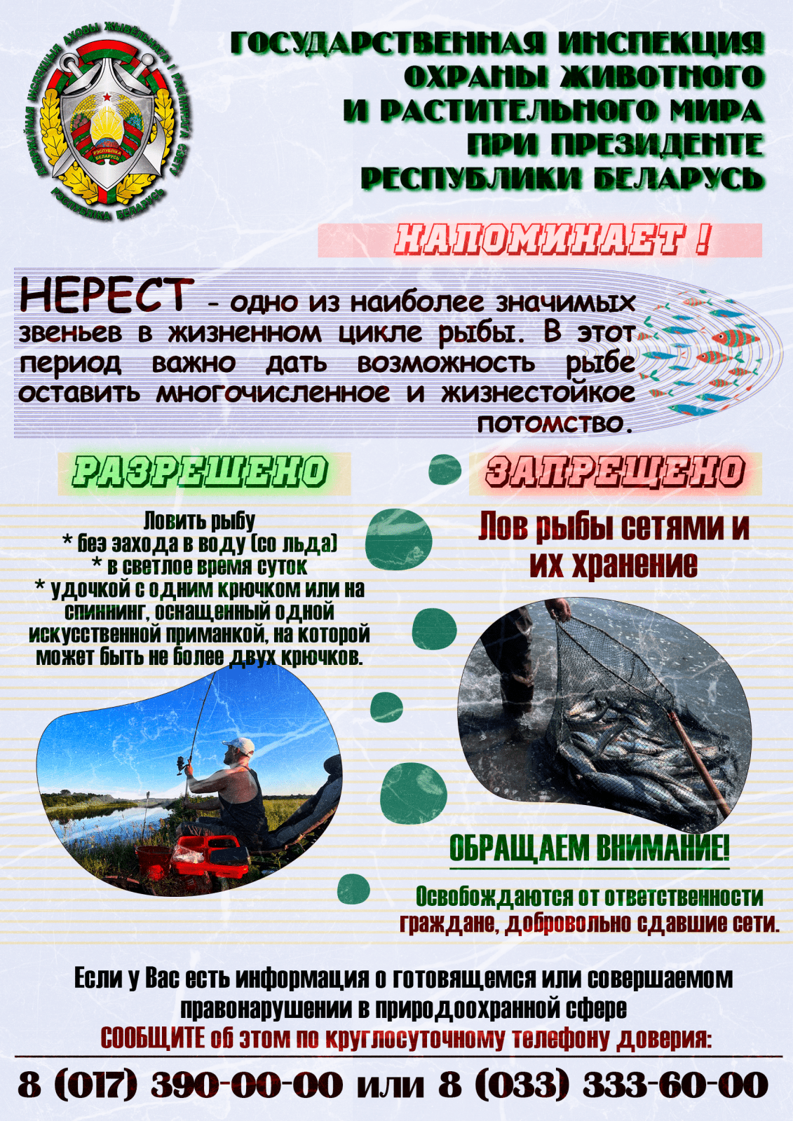 Контактные телефоны дежурной службы Могилевской областной инспекции охраны животного и растительного мира: 70 24 00, 8 (029) 633 36 59.