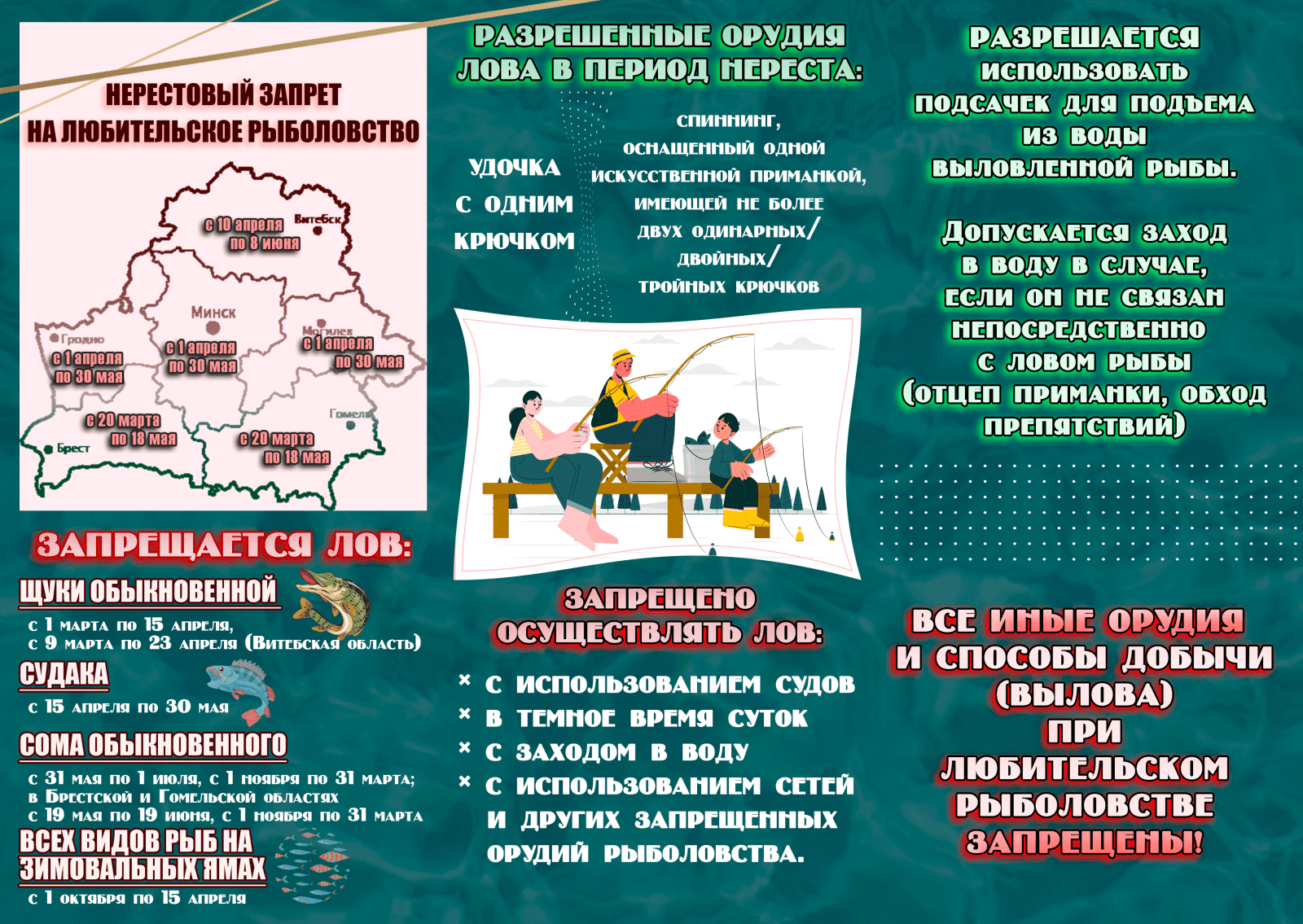 усиление контроля за исполнением гражданами и юридическими лицами требований законодательства в рыболовных угодьях Республики Беларусь;