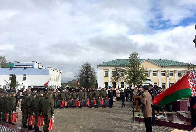 Члены военно-патриотического клуба «Золок» побывали в городе Костюковичи. И это была не просто поездка на экскурсию. Дело в том, что 19 апреля там состоялось знаковое событие — новые учащиеся вступали в ряды военно-патриотического клуба «Зубр». Торжественный ритуал принесения клятвы новобранцами проходил в центре города у мемориального комплекса жертвам Великой Отечественной войны. На мероприятии присутствовали многочисленные гости из разных городов Беларуси.