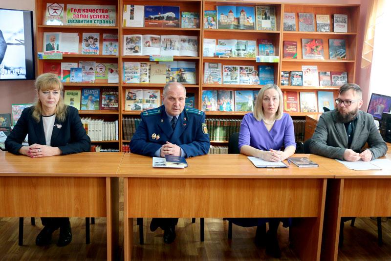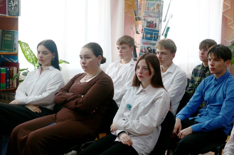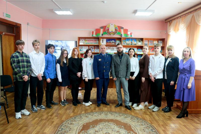 В Климовичской центральной районной библиотеке имени Ивана Пехтерева прошел час памяти «Завещано помнить». С учащимися средней школы № 3 встретились директор библиотеки — председатель районной организации РГОО «Белорусское общество «Знание» Татьяна Доменикан, заместитель прокурора Климовичского района Александр Земляков, руководитель военно-патриотического воспитания СШ № 3 Владислав Митичев.