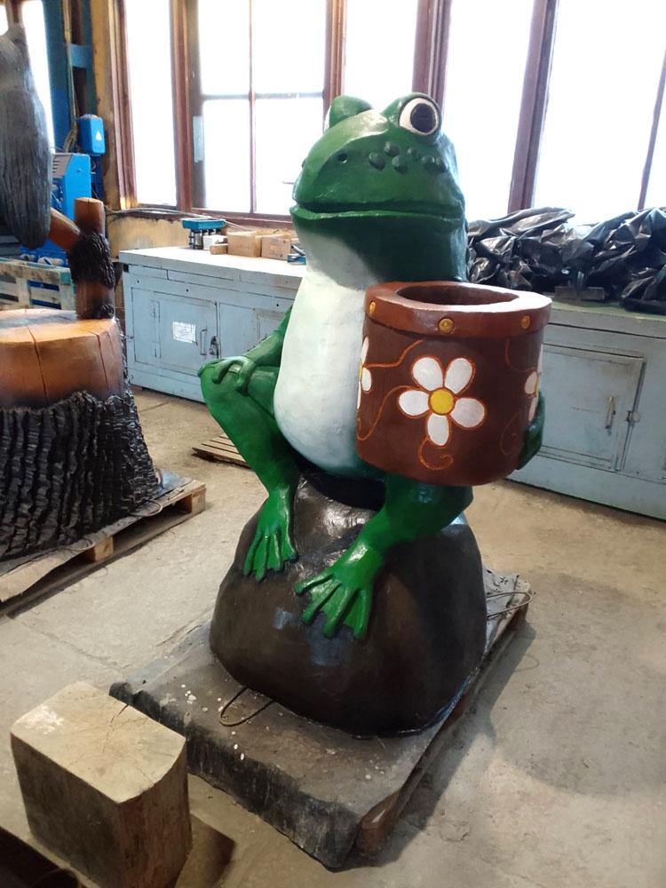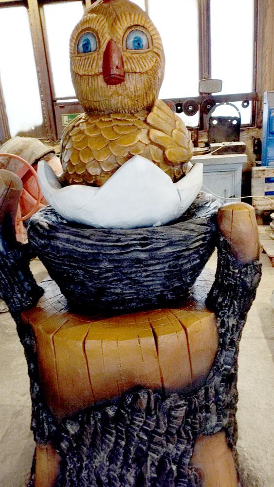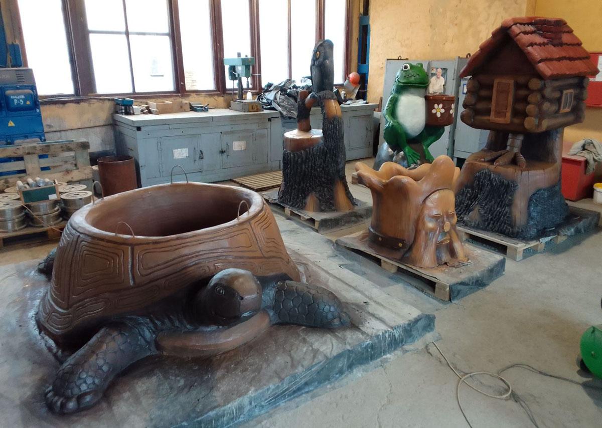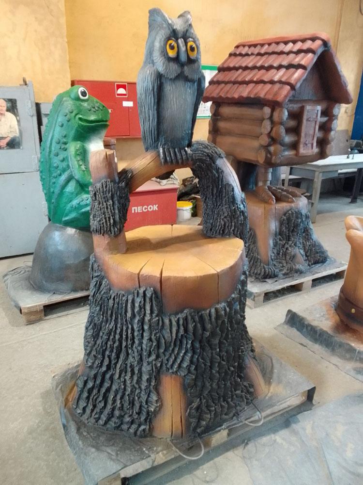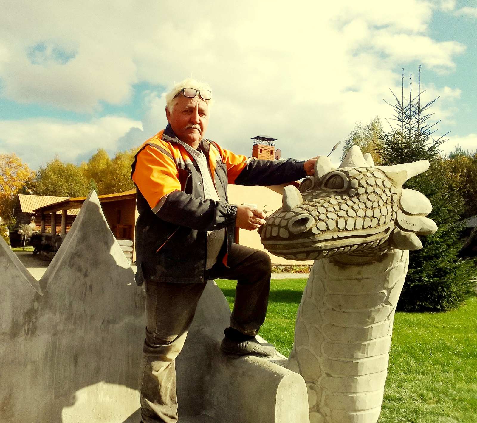 — После новогодних праздников я уехал в Гомельскую область, — рассказывает мастер. — Там мне предоставили отапливаемое помещение, где примерно за два месяца было создано шесть работ. На изготовление малых архитектурных форм уходит большое количество времени. Вначале варится каркас из металла, затем наносится рабочий слой бетона и только потом наверх накладывается финишная основа. Дальше изделие покрывается специальным составом, красится, лакируется и опять обрабатывается против грибка и других портящих скульптуру напастей.