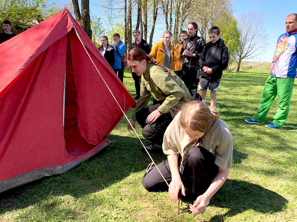 Закончился слет соревнованиями по установке палатки и боевому развертыванию. Лучшими в установке палатки стала команда «Витязь» (Милославичская средняя школа), а на этапе «Боевое развертывание» — команда «Феникс» (первая городская школа).