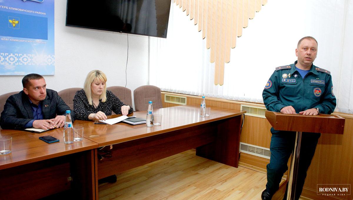 С оперативной обстановкой, складывающейся на территории района в связи с пожарами, ознакомил заместитель начальника РОЧС Сергей Хорошенький. Он же рассказал об обеспечении пожарной безопасности в организациях.