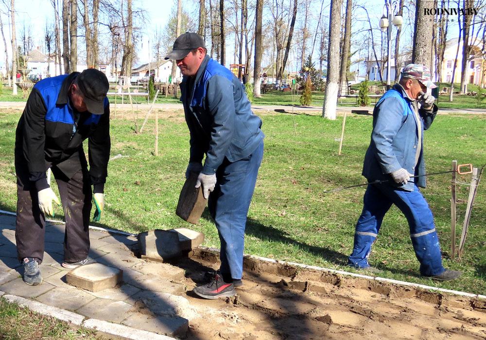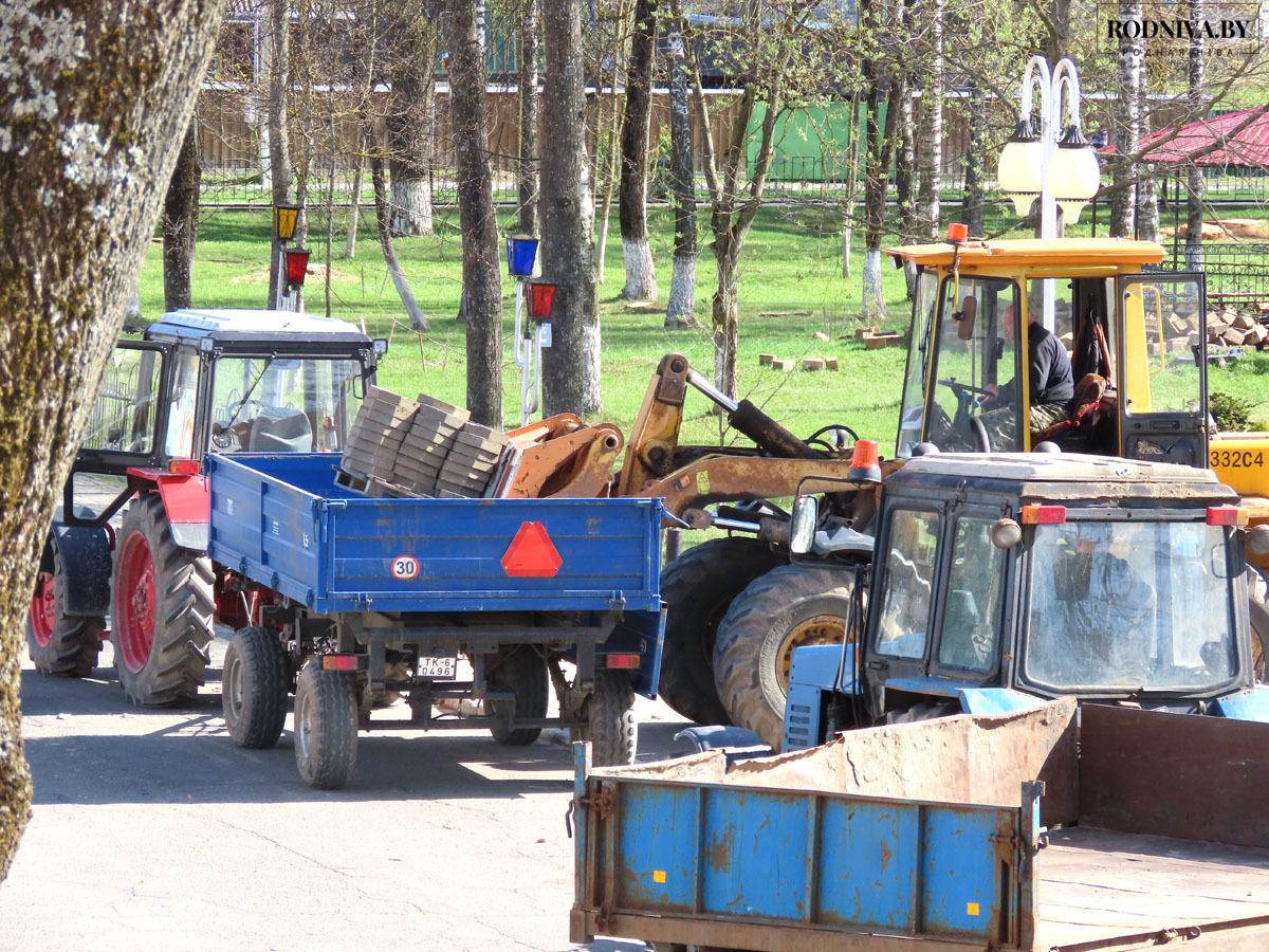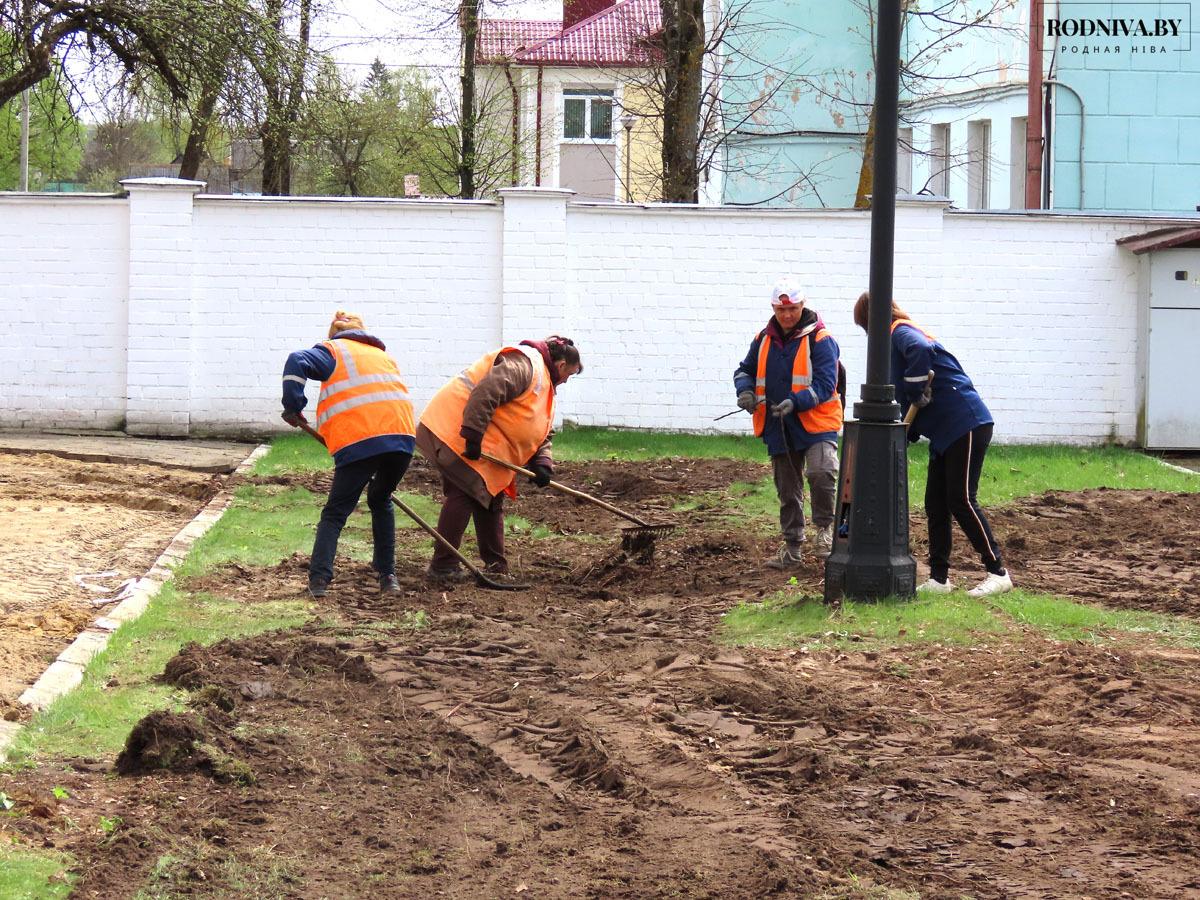 В Климовичах продолжаются работы по благоустройству общественных территорий. Они проводятся в рамках мероприятий по подготовке райцентра к областному фестивалю-ярмарке тружеников села «Дожинки» и месячника по наведению порядка на земле.
