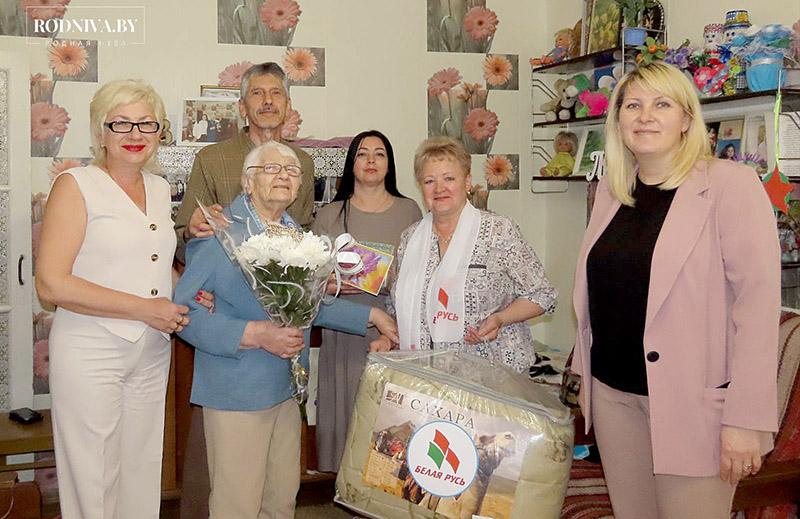 Поздравить со столетним юбилеем труженицу тыла Любовь Ефимовну Прудкову пришли начальник управления по труду, занятости и социальной защите райисполкома Алеся Белькина, заместитель председателя районной организации РОО «Белая Русь» Алла Антипова, директор учреждения «Климовичский РЦСОН» Светлана Гращенко, заведующий отделением социальной помощи на дому РЦСОН Ирина Стефаненко. Гостей хозяйка встречала вместе с сыном Игорем Ивановичем.