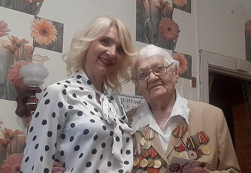 Климовчанка Любовь Ефимовна Прудкова принимает поздравления ко Дню Победы.