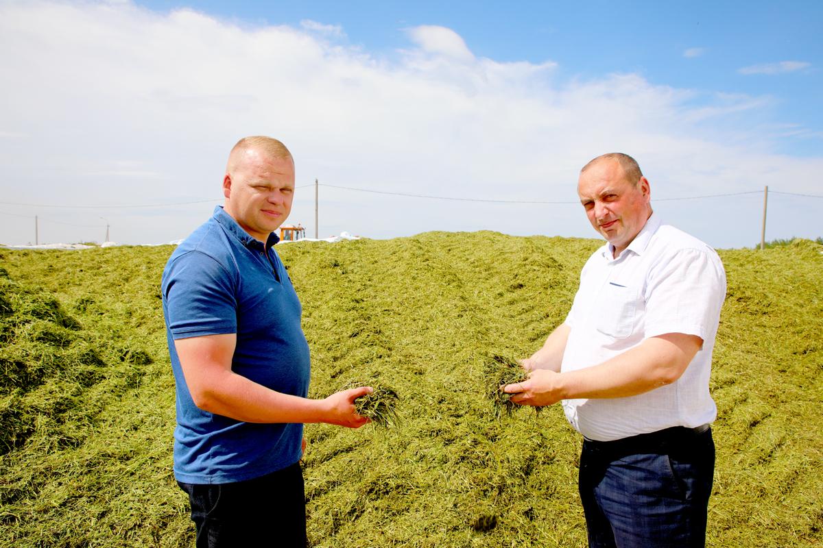 По информации заместителя директора КСУП «Приграничный-Агро» Юрия Бульбенкова, сводный отряд задействован на закладке сенажной траншеи возле фермы Милославичи. Косят люцерну Сергей Попков из местного хозяйства и Леонид Новиков из ОАО «Роднянский». Подбором и измельчением провяленной массы занимаются Николай Афанасов (ОАО «Макеевичи») и Юрий Судиловский (ОАО «Роднянский»). Работать с граблями доверили Михаилу Степченко (ОАО «Макеевичи»). Сергей Новиков из этого же хозяйства на Амкодоре трамбует зеленую массу.
