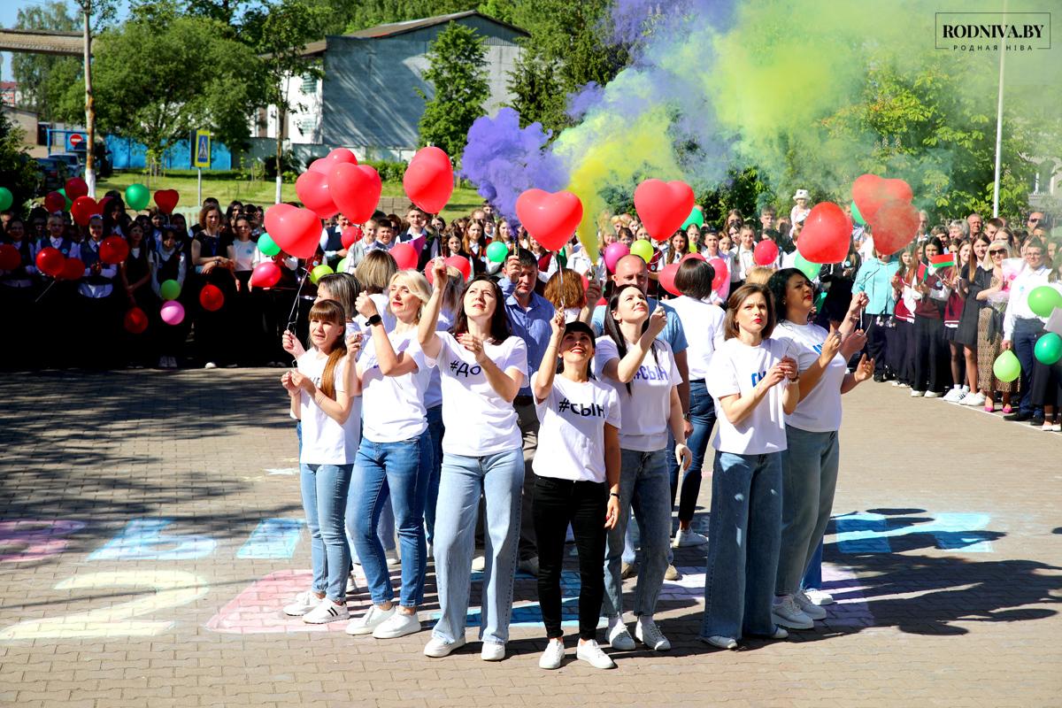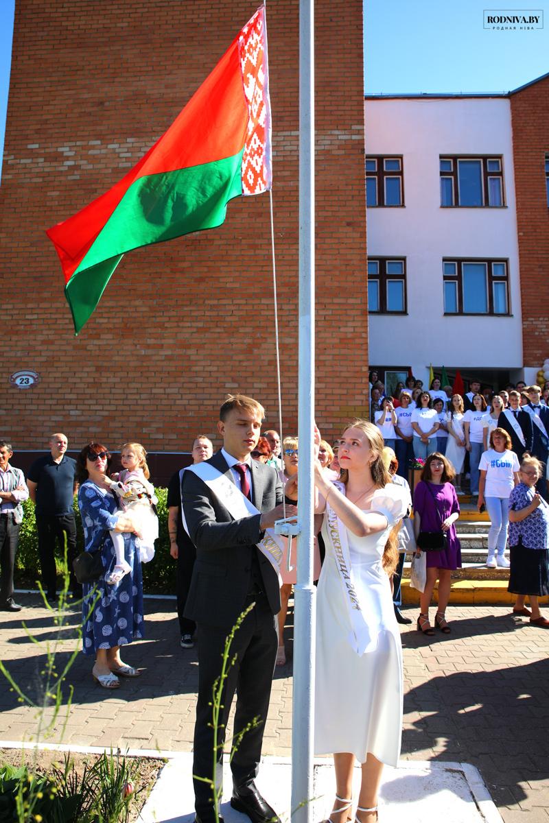 Право поднять Государственный флаг Республики Беларусь было предоставлено победителям различных конкурсов и соревнований, отличникам учебы Дарье Писаренко и Никите Растовскому.