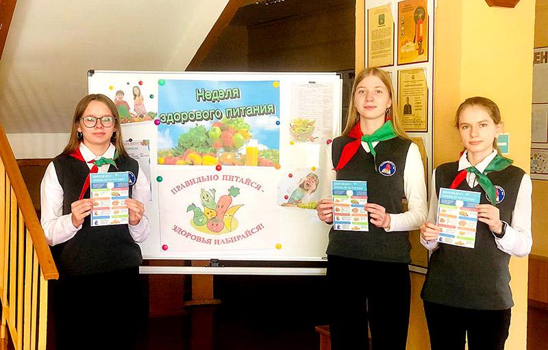 В рамках Недели здорового питания члены БРПО вручили работникам и учащимся школы памятки-листовки «Питайся правильно!». Для младших школьников прошла спортландия «В здоровом теле — здоровый дух!». В течение недели на информационном стенде работал экран вкуса «На вкус и цвет», где ребята ежедневно выставляли оценку блюдам из школьного меню.
