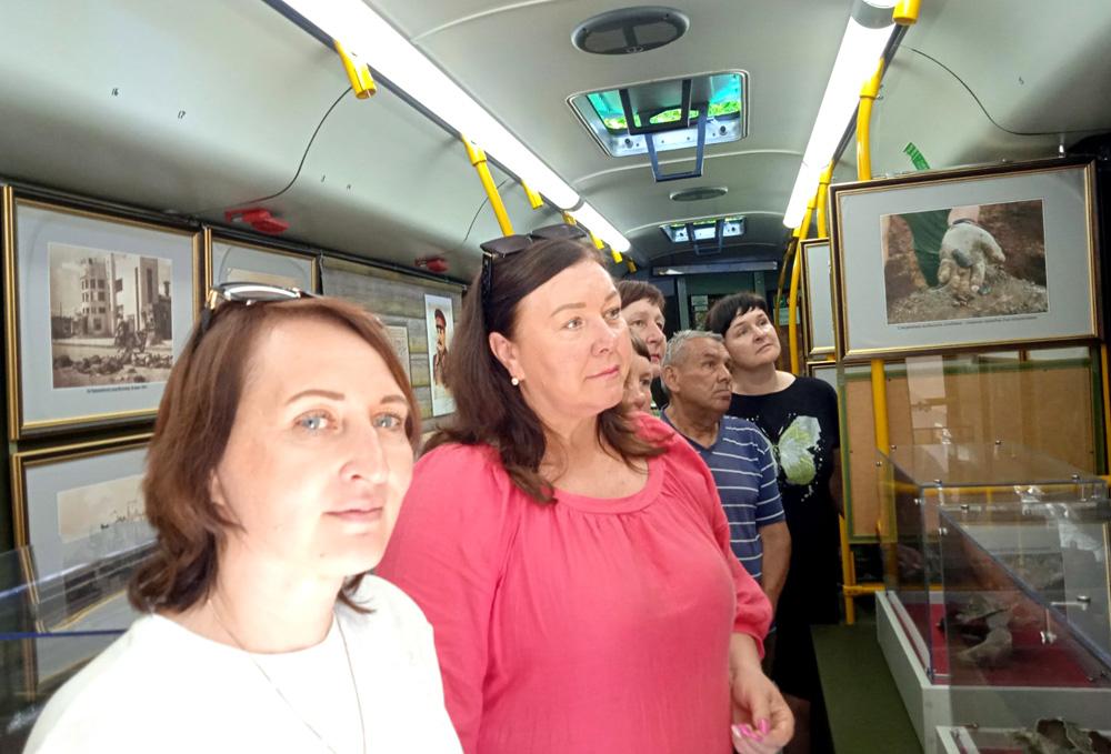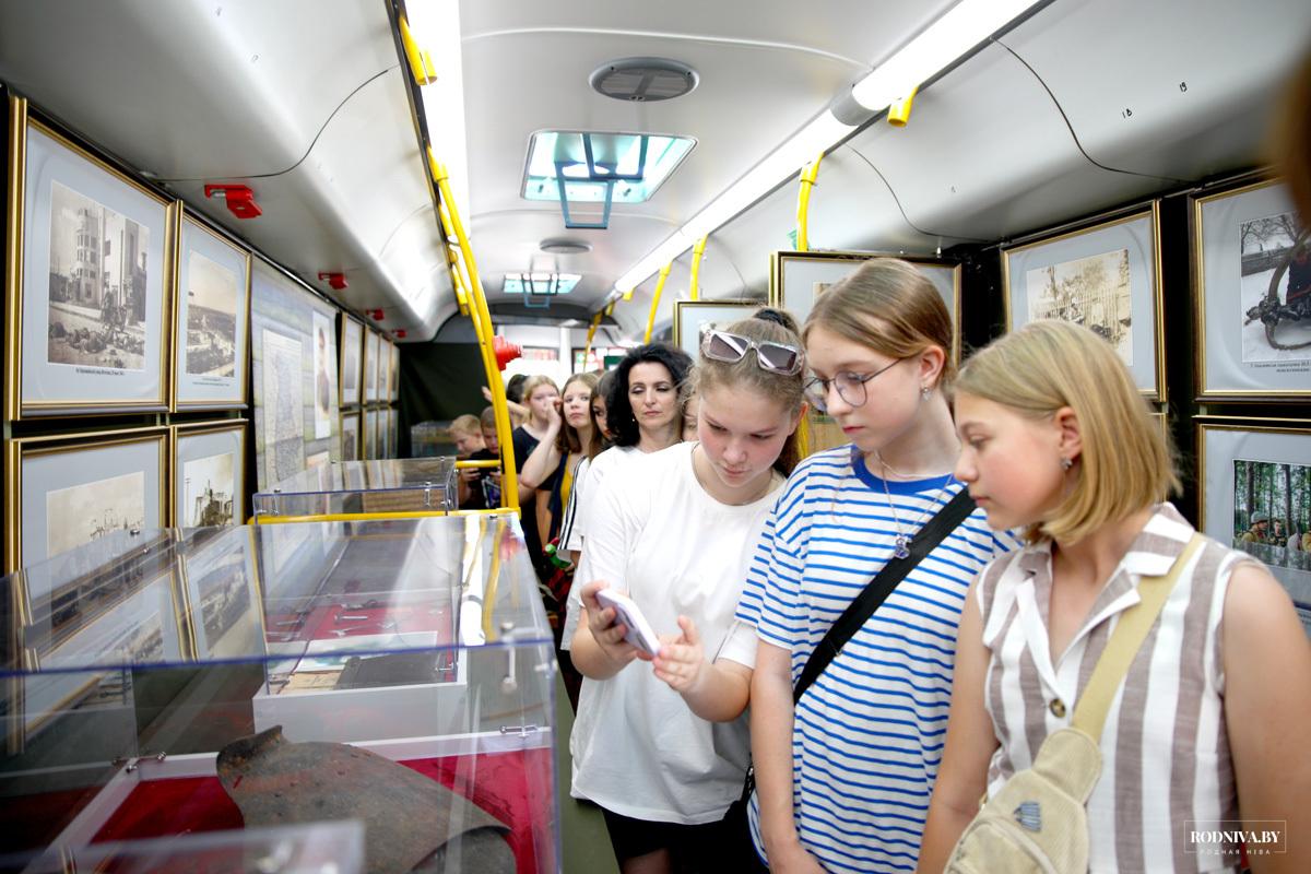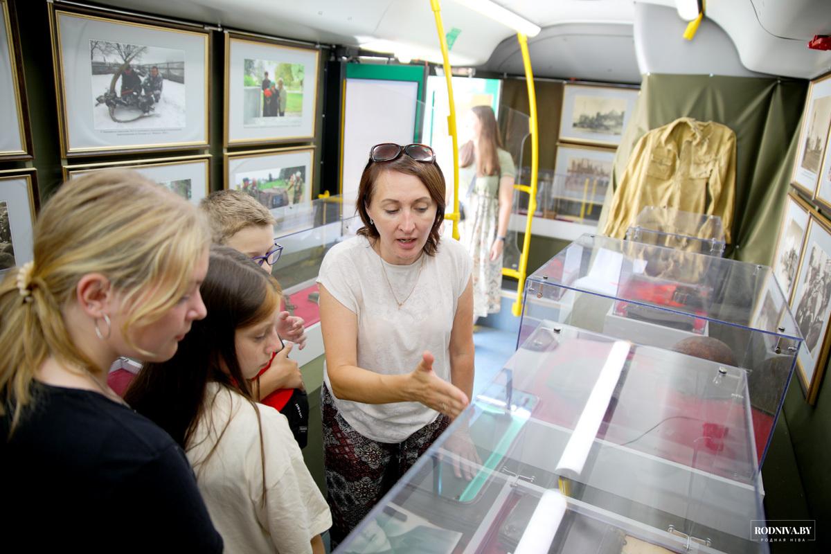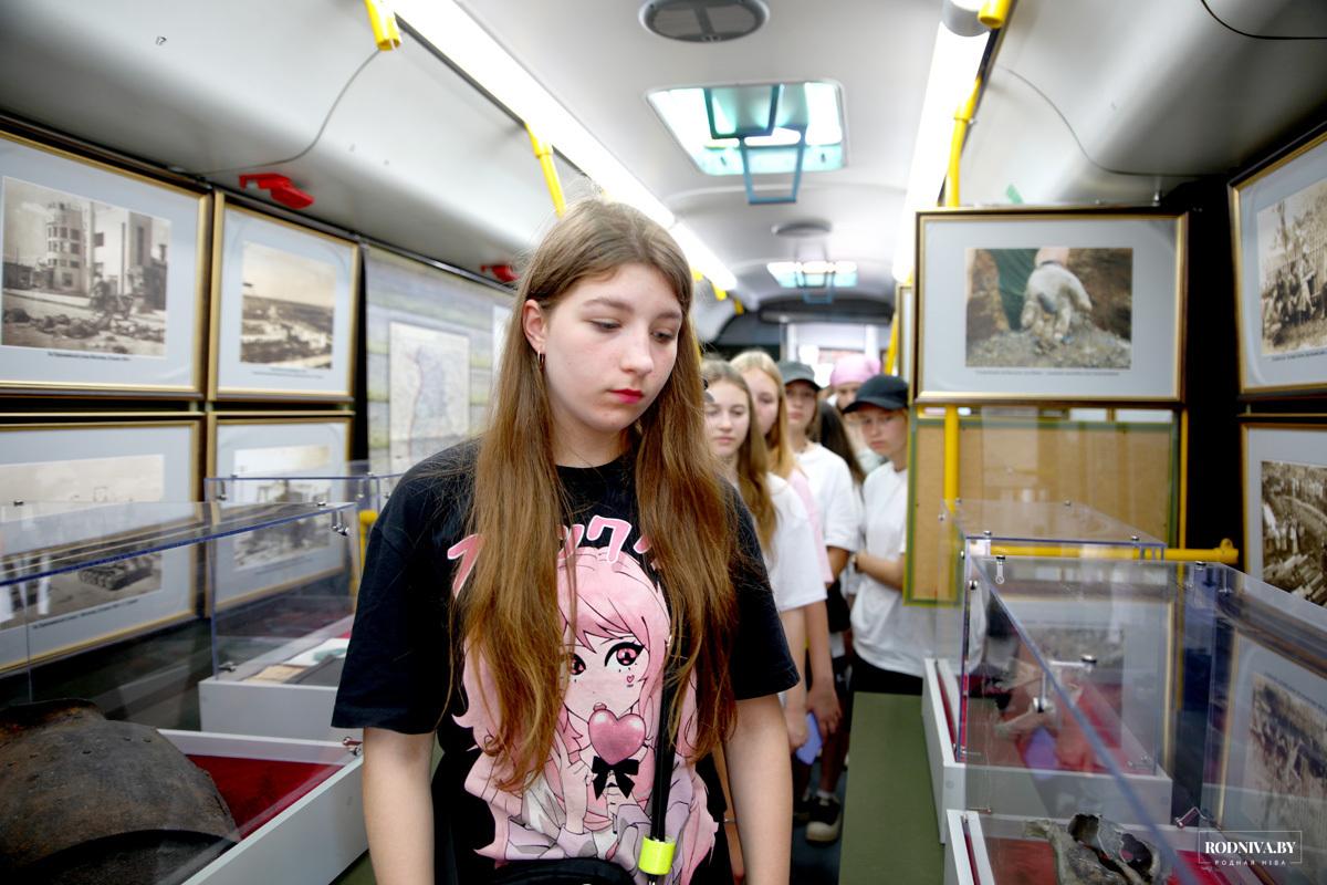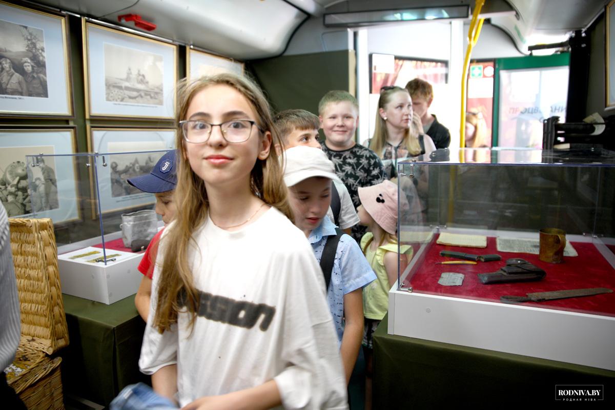 Жители агрогородка Родня и райцентра с удовольствием знакомились с экспонатами в уникальных автобусах-музеях. Старинные фотографии, находки времен Великой Отечественной войны и многое другое вошло в состав экспозиции, подготовленной сотрудниками Могилевского областного краеведческого музея. Тема Великой Отечественной войны особенно важна для воспитания подрастающего поколения белорусов. Отрадно, что среди посетителей экспозиции было много молодых людей.