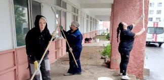 ФОТОФАКТ: Строители приступили к ремонту фасада районной больницы в Климовичах