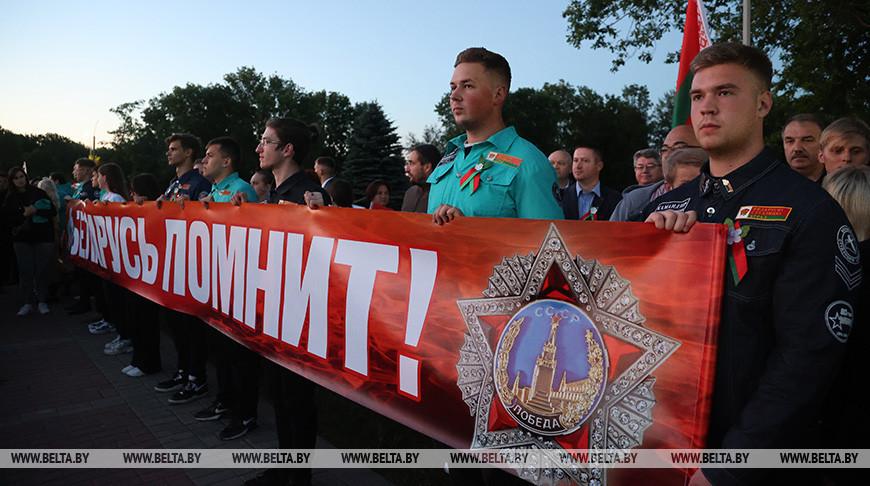В День всенародной памяти жертв Великой Отечественной войны и геноцида белорусского народа международный молодежный патриотический проект «Дорогами Памяти и Славы» проходит на Буйничском поле под Могилевом.