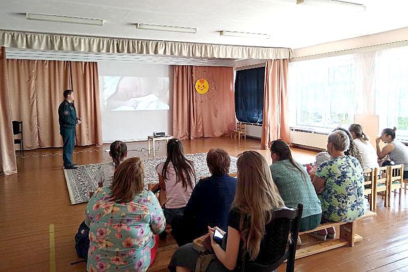 В форме интерактивной беседы спасатели вместе с присутствующими рассмотрели различные чрезвычайные ситуации с участием детей. Особое внимание было уделено обеспечению безопасных условий проживания несовершеннолетних. Подробнее остановились на недопустимости детской шалости с огнем и конкретных мерах по контролю за мальчишками и девчонками дома, на игровых площадках. Присутствующим рассказали о рисках возникновения пожара из-за нарушений правил безопасности взрослыми.