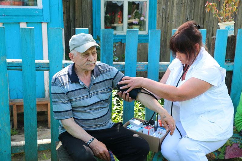 Сельчане не упустили возможность измерить артериальное давление и спросить совета у фельдшера Галичского фельдшерско-акушерского пункта Ирины Егорченко.
