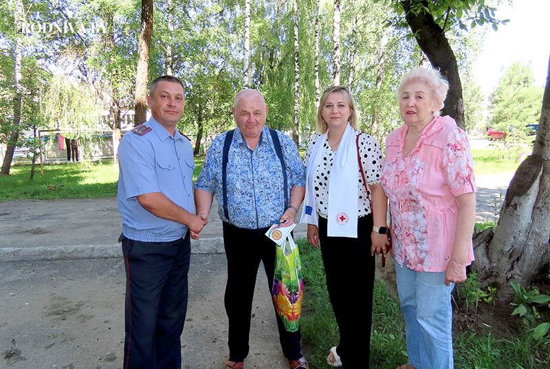 В преддверии праздника Дня Независимости Республики Беларусь начальник Климовичского отдела Департамента охраны Александр Курносов, председатель Климовичского районного совета ветеранов Валентина Цыганкова, председатель районной организации Белорусского общества Красного Креста Анна Зинекова и председатель Родненского сельского Совета Сергей Салобуто посетили родителей, чьи дети погибли при исполнении служебных обязанностей в мирное время.