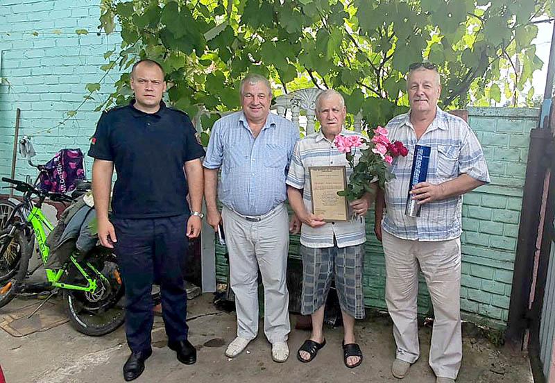 Поздравления с юбилеем принимал Михаил Романович Кулинич. Ему исполнилось 75 лет. В гости к имениннику приехали временно исполняющий обязанности заместителя начальника ОВД райисполкома Дмитрий Панасенко, председатель первичной ветеранской организации Александр Волков и бывший сослуживец Александр Гришанков.
