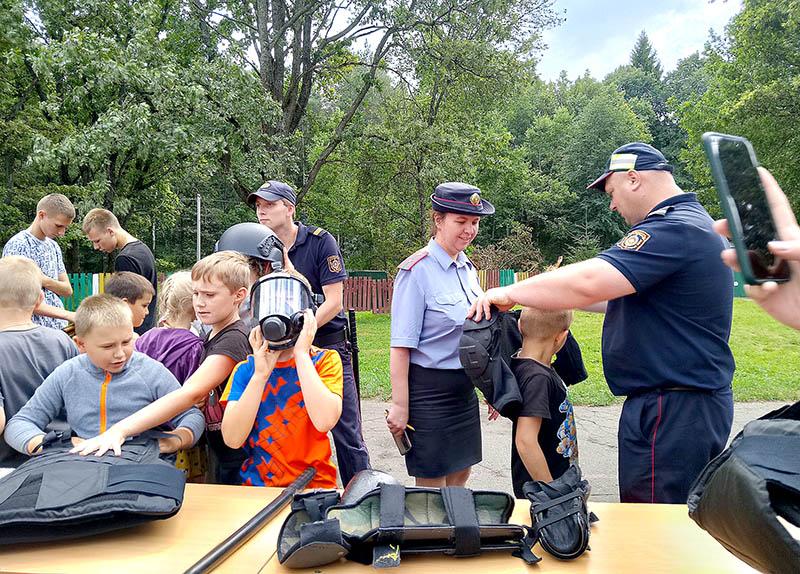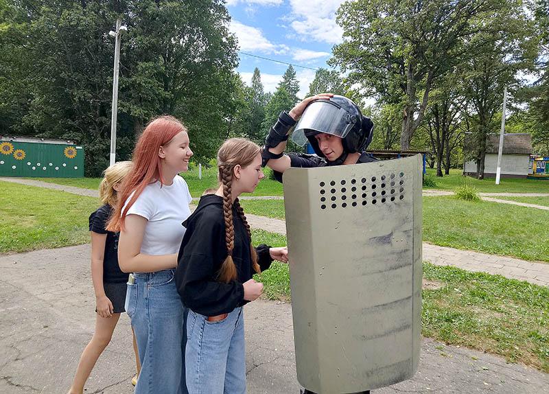 Отдыхающие в лагере узнали о спецсредствах и вооружении и даже примерили это на себя. Желающие могли посидеть за рулем служебного автомобиля, а старшим ребятам было интересно узнать, как проводится разборка и сборка автомата Калашникова, пистолета Макарова.