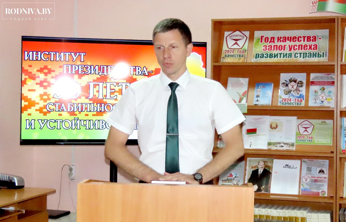 В Климовичской центральной районной библиотеке прошло заседание круглого стола «Институт президентства: 30 лет стабильности и устойчивого развития». В качестве спикеров были приглашены начальник отдела идеологической работы и по делам молодежи Климовичского райисполкома Андрей Зенькович, председатель районного отделения Белорусской партии «Белая Русь» Елена Москалева, лектор РГОО «Знание», историк и политолог Петр Шутов. На встречу с учащимися Климовичского аграрного колледжа пришли также председатель районного объединения профсоюзов Алеся Котова и председатель районного совета ветеранов Валентина Цыганкова.