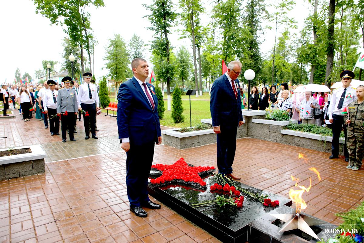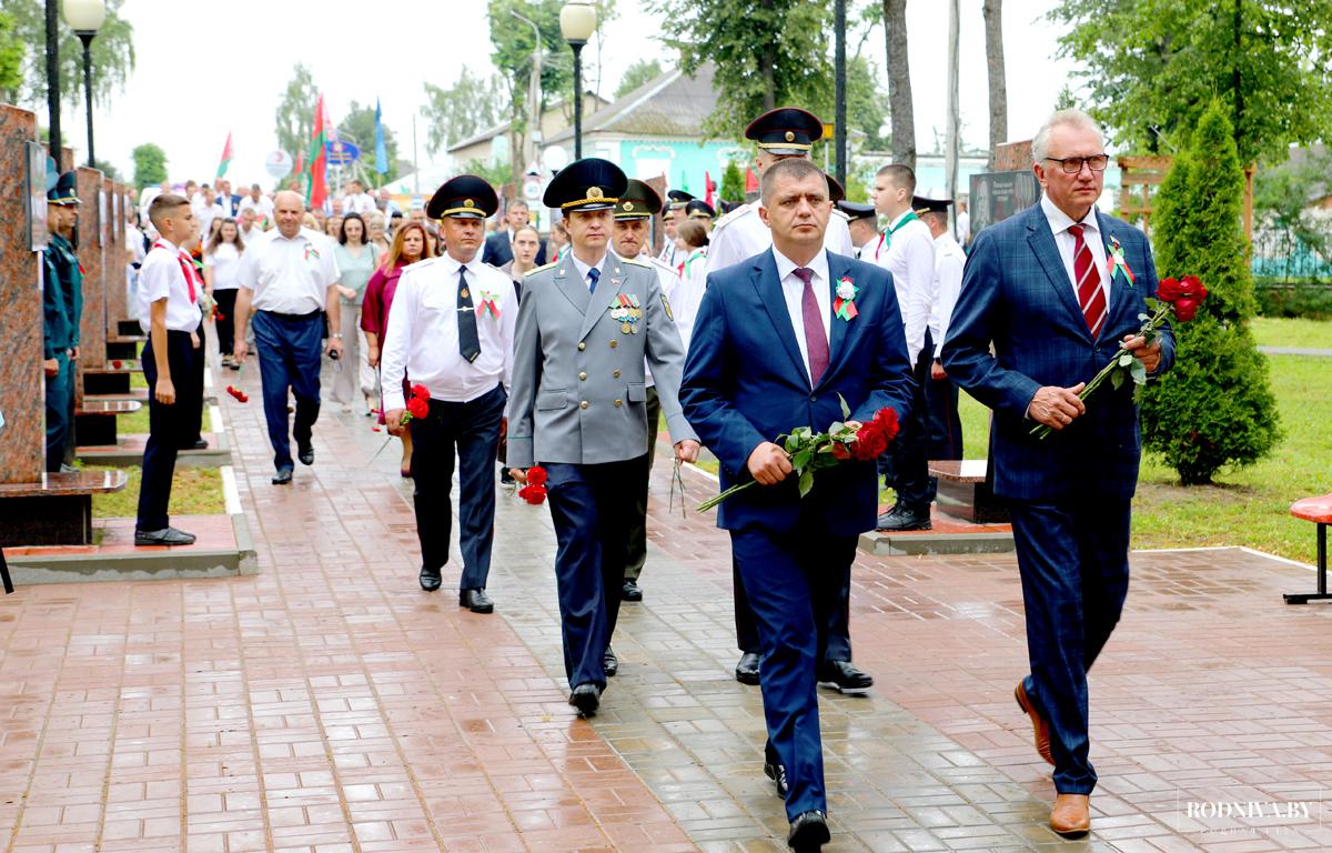 Там же состоялся и митинг, посвященный знаменательной дате. К участникам мероприятия обратился председатель райисполкома Дмитрий Хайновский. Дмитрий Викторович поздравил жителей района с юбилеем освобождения республики от немецко-фашистских захватчиков и пожелал всем мира, добра, благополучия.