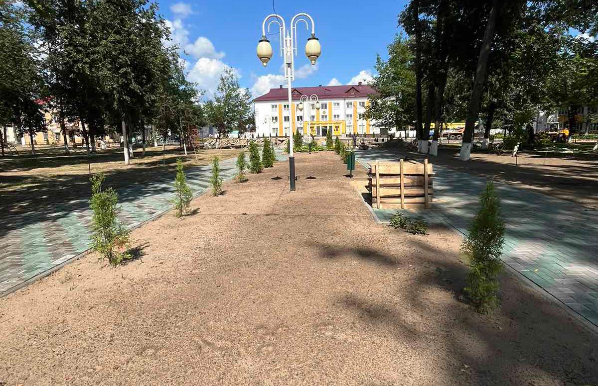 Представители Могилевзеленстроя ремонтируют газонную часть парка Народного единства и ведут подсев газонной травы. Работы выполнены примерно на 30% площади.