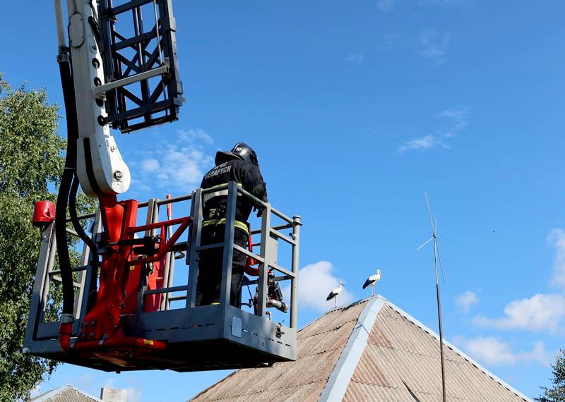 Неравнодушные жители решили незамедлительно обратиться за помощью к спасателям. Оперативно отреагировав, работники Климовичского РОЧС сразу же принялись помогать аистам в благоустройстве старого дома.