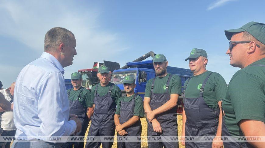 С таким важным событием передовиков поздравил председатель Могилевского облисполкома Анатолий Исаченко. Он отметил, что в регионе уже убрано 56% площадей озимого ячменя. «Хорошее начало, хорошие темпы уборки. Мы будем ускоряться. Погода позволяет, техника готова, механизаторы настроены, оплата разработана. Все необходимые мероприятия провели, — сказал он. — Радует, что есть хорошие поля, предприятия, которые получают достойный урожай. Я думаю, в этом году мы должны получить больше к уровню прошлого года. Загадывать не будем, но пока виды на урожай таковы. Самое главное — вовремя и качественно убрать, и на это нацелены все силы».