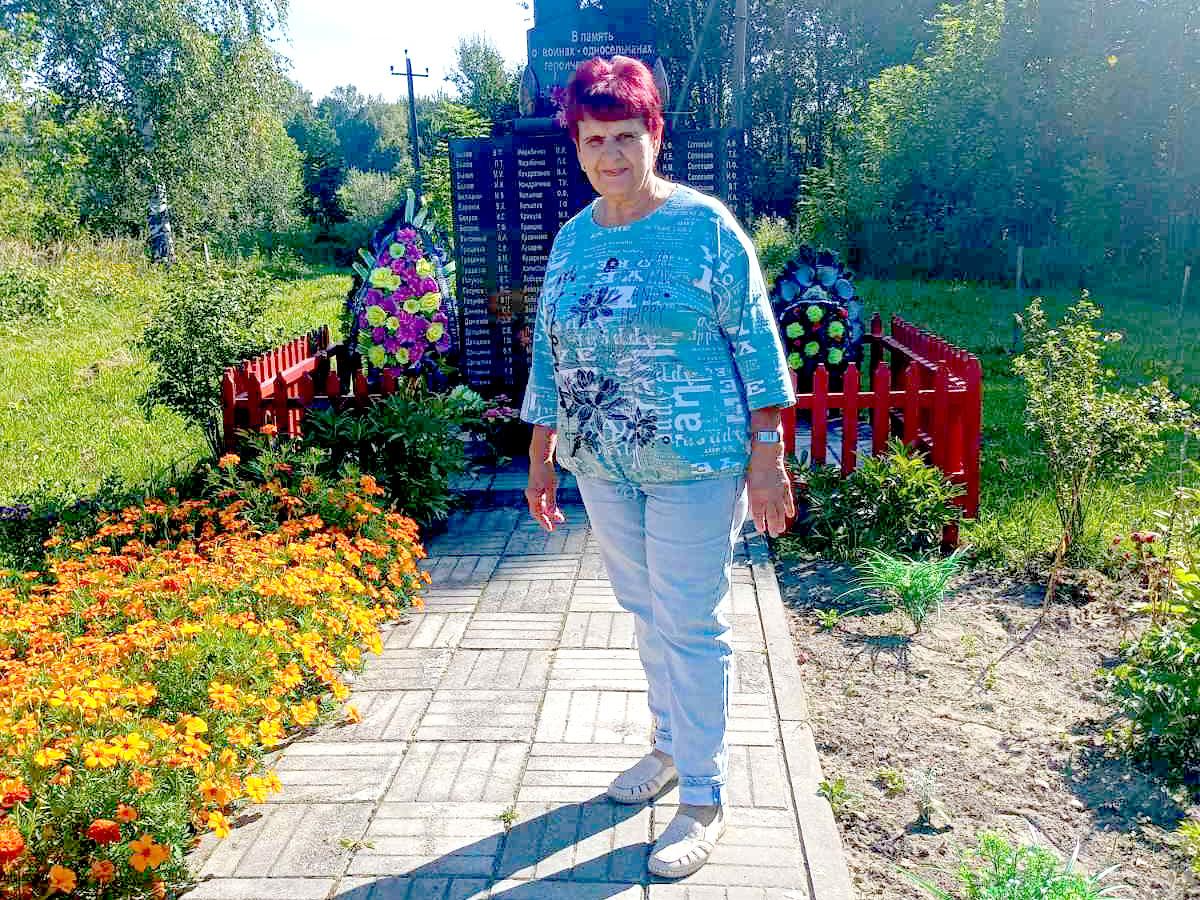 В частности, Валентина Леонидовна взяла шефство над памятником погибшим землякам в деревне Красавичи. За собственные средства она покупает семена различных цветов и высаживает их у обелиска. Цветут бархатцы, флоксы, хризантемы, астры, георгины. У самого памятника, по бокам вдоль дорожки к нему. В планах посадить тюльпаны, примулы, чтобы зацвели к 9 Мая. За всеми она ухаживает, пропалывает, поливает. Проявляет инициативу по благо-устройству. И данная инициатива заслуживает примера.
