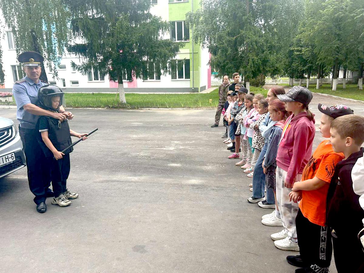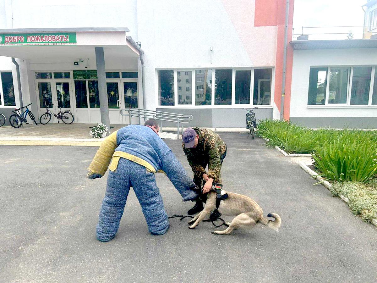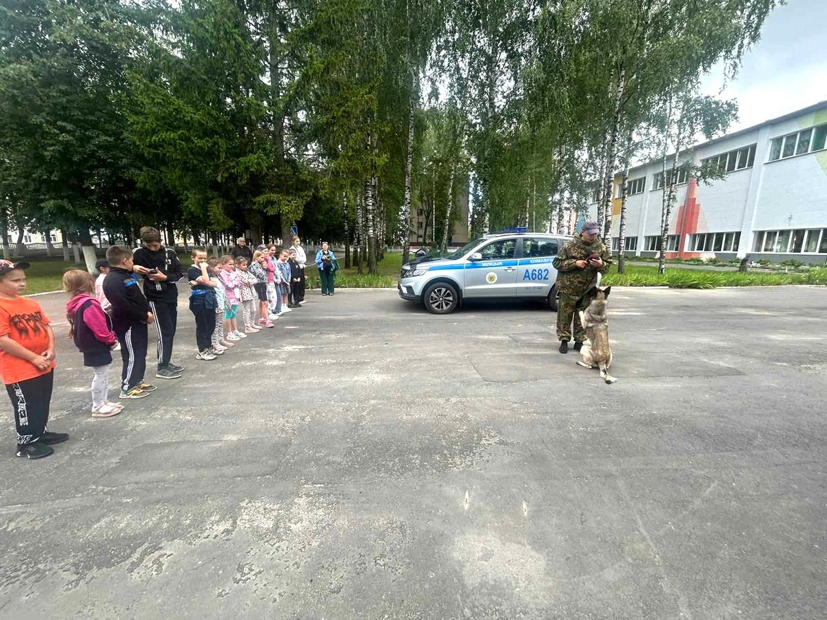 Милиционер-кинолог Артем Лавренко со служебной собакой Жархан продемонстрировал мальчишкам и девчонкам общий курс дрессировки животного, выборку вещи и задержание условного преступника. Служебные собаки наряду с сотрудниками милиции выполняют должностные обязанности по охране объектов всех форм собственности и общественного порядка на маршруте патрулирования.