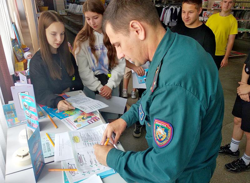 Первое мероприятие прошло в магазине «Родны кут». Работники МЧС совместно с представителями ОО «БРСМ» пообщались с посетителями о том, как правильно пользоваться первичными средствами пожаротушения. Интересной была и викторина по безопасности жизнедеятельности.