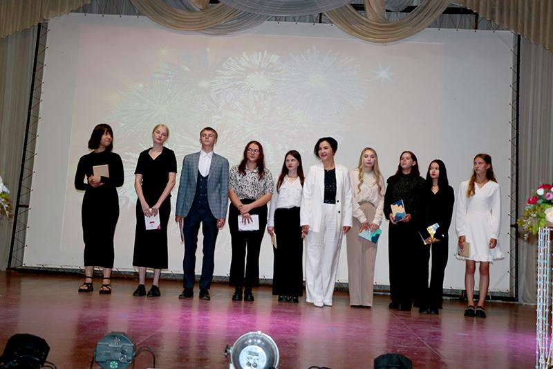 По сложившейся традиции на сцену СДК пригласили молодых педагогов. Среди тех, кто начнет свой путь по дороге знаний, педагог-психолог Дарья Бобер; педагог социальный Элина Даргевич; учителя иностранного языка Алина Дорошенко и Анастасия Ларионова; учитель физической культуры Андрей Дроздов; учитель музыки Инесса Зайцева; учителя начальных классов Елизавета Козлова, Оксана Мартынникова и Карина Моисеенко; воспитатель дошкольного образования Дарья Татаренко.