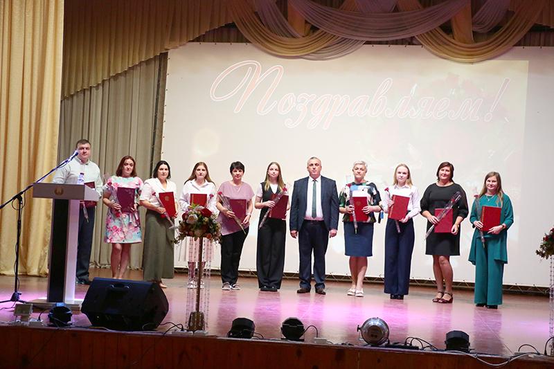 Почетной грамотой райисполкома за высокий профессионализм, значительный личный вклад и достигнутые успехи в воспитании и обучении подрастающего поколения награждены: Татьяна Дроздова — педагог социальный районного социально-педагогического центра; Юлия Мартынова — начальник отдела по основной деятельности районного учебно-методического кабинета. Благодарность райисполкома объявлена Людмиле Кулешовой — учителю начальных классов районной гимназии. Благодарственными письмами райисполкома награждены: Анастасия Воропаева — педагог-организатор Тимоновской средней школы; Зинаида Гончарова — помощник воспитателя детского сада «Журавушка»; Людмила Горбатикова — педагог социальный Милославичской средней школы; Жанна Новикова — учитель начальных классов Лобжанской средней школы; Алла Осмоловская — учитель трудового обучения средней школы № 1; Зоя Прокудина — начальник планово-экономического отдела центра по обеспечению деятельности бюджетных организаций; Ирина Тищенко — заведующий хозяйством детского сада «Ромашка»; Ольга Целикова — секретарь средней школы № 1; Светлана Чукова — заведующий хозяйством детского сада «Теремок»; Людмила Шаповалова — учитель белорусского языка и литературы Барсуковской базовой школы.