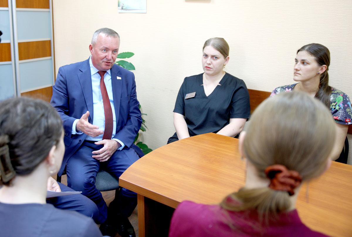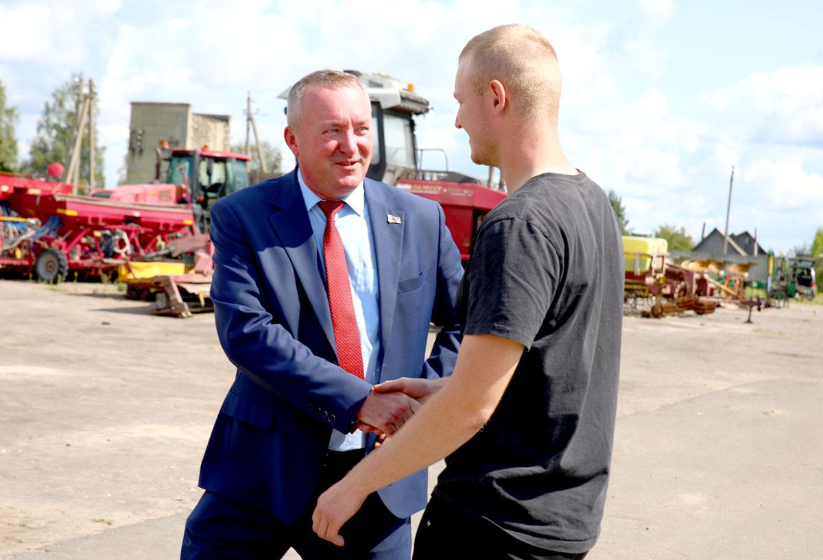 На машинном дворе КСУП «Михалинский» Леонид Мартынюк поговорил с руководством и молодыми специалистами предприятия.