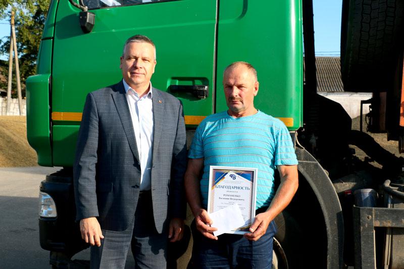 В ОАО «Племзавод «Тимоново» поздравления принимал еще один лидер — водитель Василий Романенко. Он перевез более двух тысяч тонн зерна нового урожая.