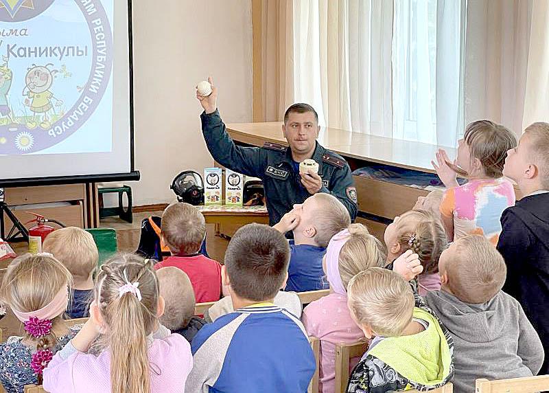 Каким должно быть безопасное детство, рассказал воспитанникам детского сада № 5 «Росинка» старший инспектор сектора пропаганды и взаимодействия с общественностью Климовичского РОЧС Дмитрий Ветошкин. Мероприятие прошло в рамках акции «Каникулы без дыма и огня!».