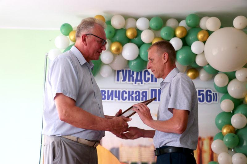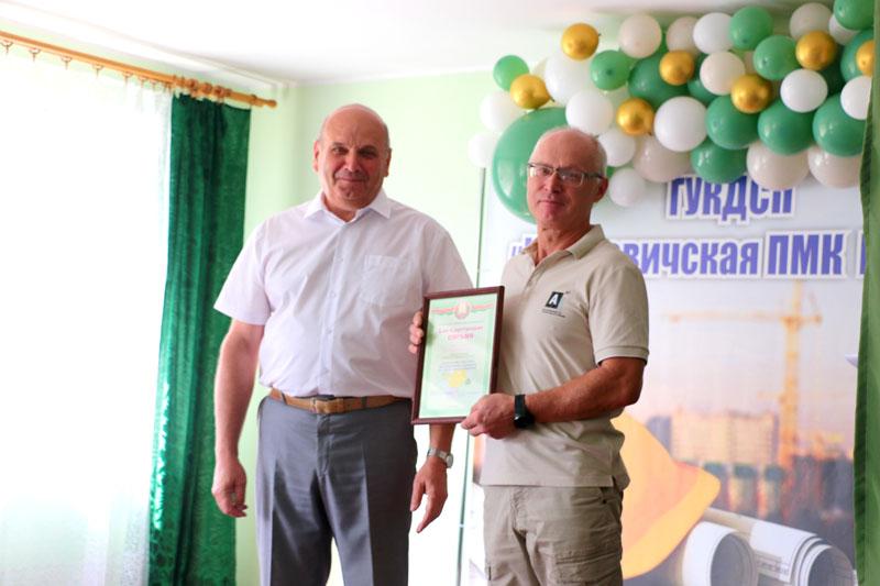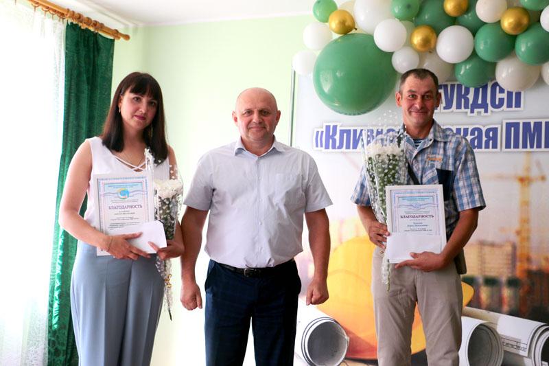 С праздником коллег поздравили начальник государственного унитарного коммунального дочернего строительного предприятия «Климовичская передвижная механизированная колонна № 256» Владимир Шапкин и председатель первичной профсоюзной организации Екатерина Тимошенко. Они наградили Почетными грамотами и вручили денежные премии ряду работников организации.