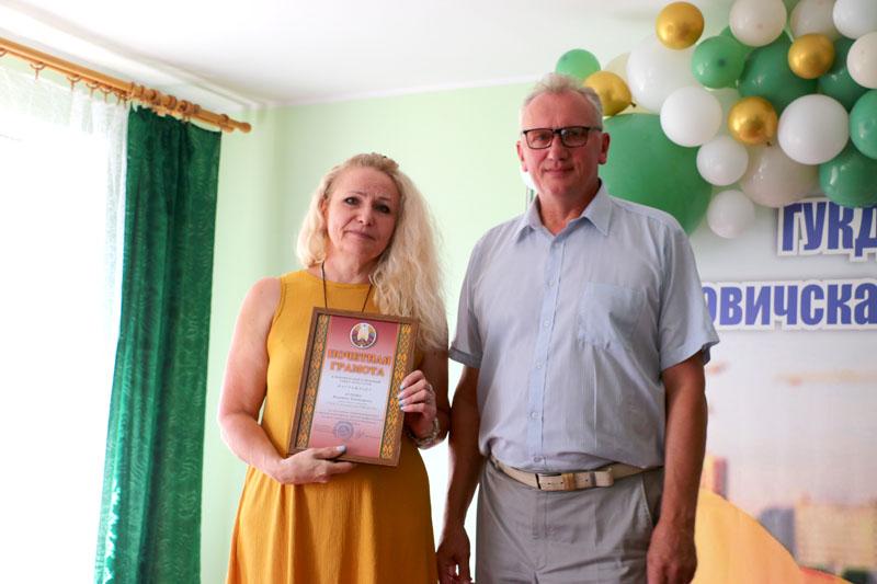 Председатель райкома профсоюза работников агропромышленного комплекса Климовичского района Александр Голочевский вручил благодарственные письма и ценные подарки секретарю приемной Любови Астапенко и плотнику Борису Чигилову.