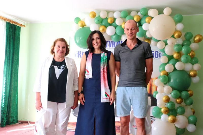 Председатель первичной организации республиканского общественного объединения «Белая Русь» ПМК № 256 Инна Елисеенко вручила ценные подарки электрогазосварщику Александру Елисеенко и главному бухгалтеру Ларисе Андреенко.