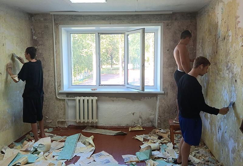 Как рассказала заместитель руководителя учреждения по воспитательной работе Анна Савченко, четырнадцать парней и девушек вместе с работниками колледжа заняты ремонтом общежитий № 2 и № 3 и благоустройством территории возле них.