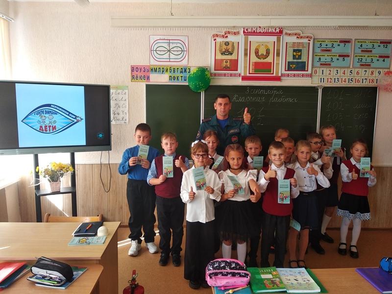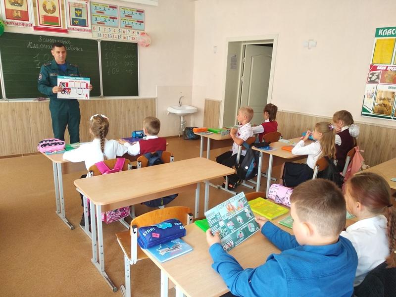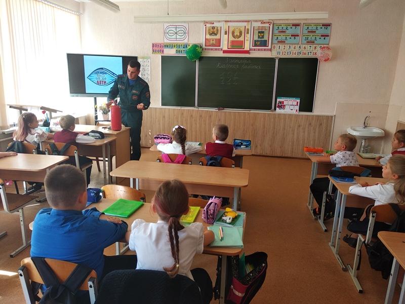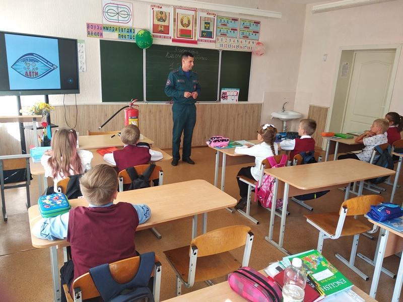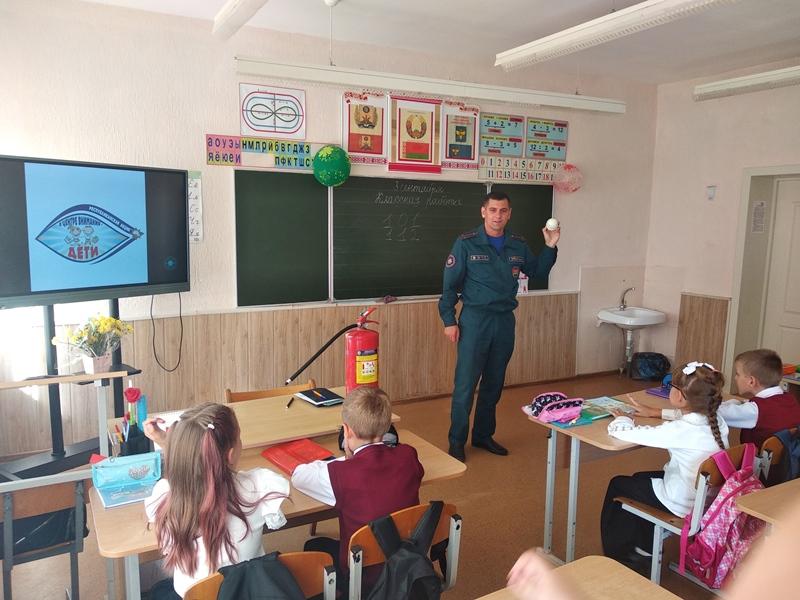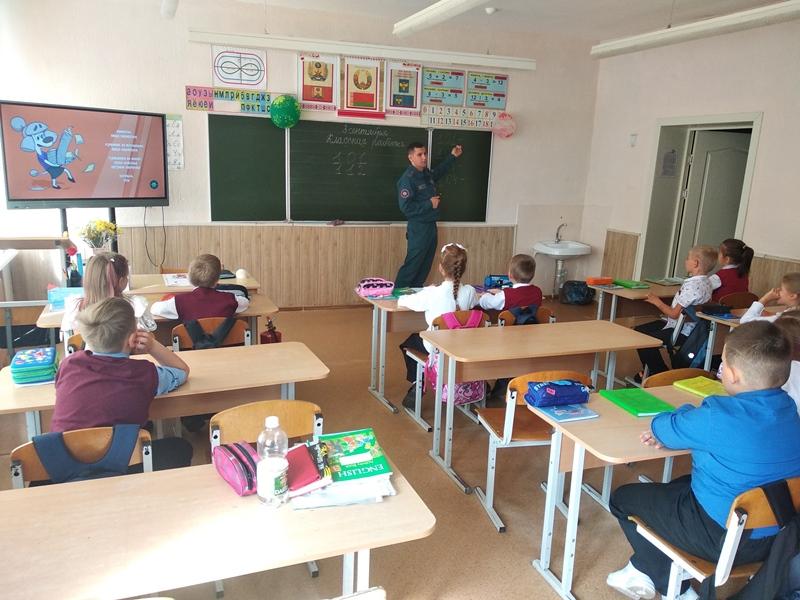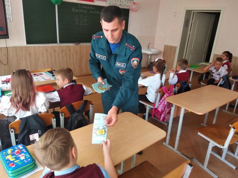 Спасатели поделились важнейшей информацией о действиях во время чрезвычайных ситуаций. Во время урока учащиеся просмотрели обучающие мультфильмы, а также каждому была вручена наглядно-изобразительная продукция.