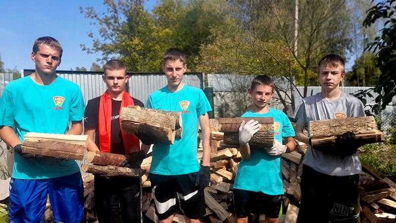 Так, в День ударного труда волонтеры Климовичского аграрного колледжа помогли в уборке дров жительнице города Марии Михайловне Старовойтовой. Леонид Балыко, Никита Гришаев, Артем Новицкий, Данила Дыскин, Максим Леванков вместе с первым секретарем райкома откликнулись на просьбу женщины помочь ей перенести и сложить дрова в поленницу.
