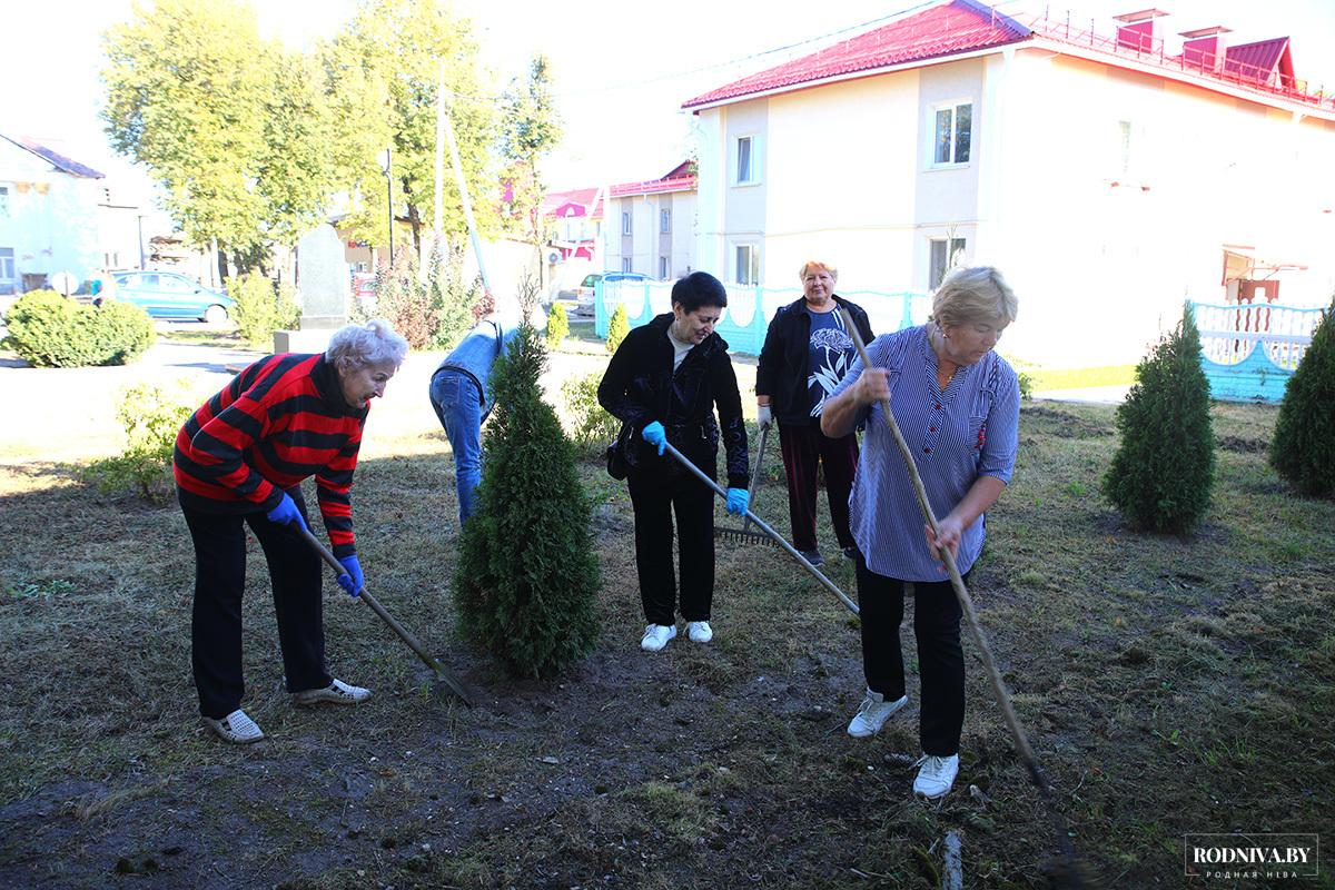 Руководство района, молодые специалисты, представители ветеранской организации занимались благоустройством территории возле памятника женщинам войны.
