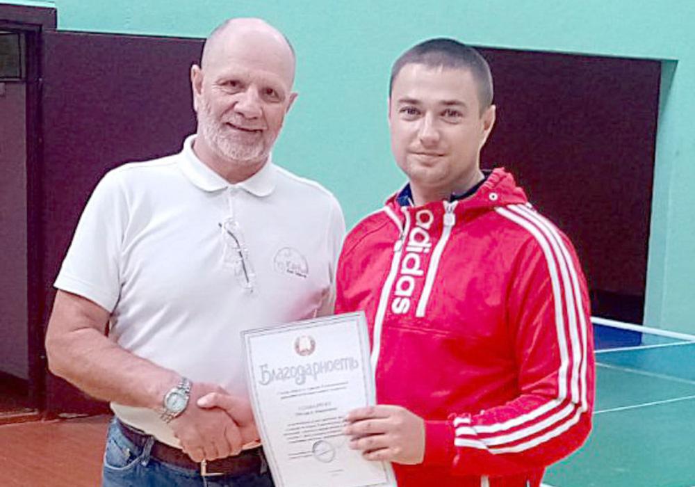 Благодарность сектора спорта и туризма Климовичского райисполкома вручена одному из старейших и активных участников теннисных турниров климовчанину Михаилу Слабодчуку.